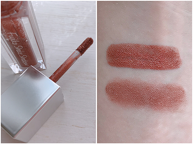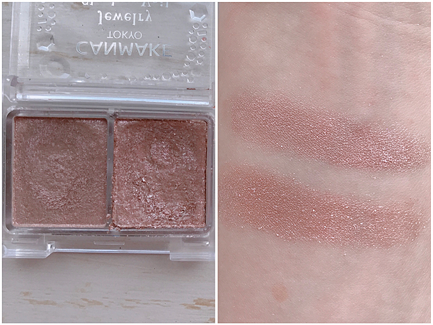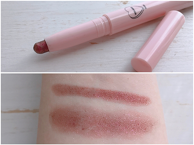 ピンクのベースにゴールドラメが散りばめられています。まばたきするたびにキラキラとしてかわいい!ブラウンのアイライナーやマスカラとの相性が抜群です。涙袋にのせてもGOOD!