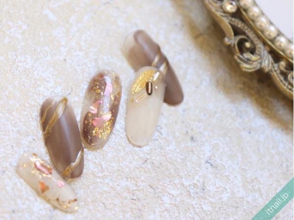 シースルーのブラウン×金のラメがシンプルにお洒落♡
