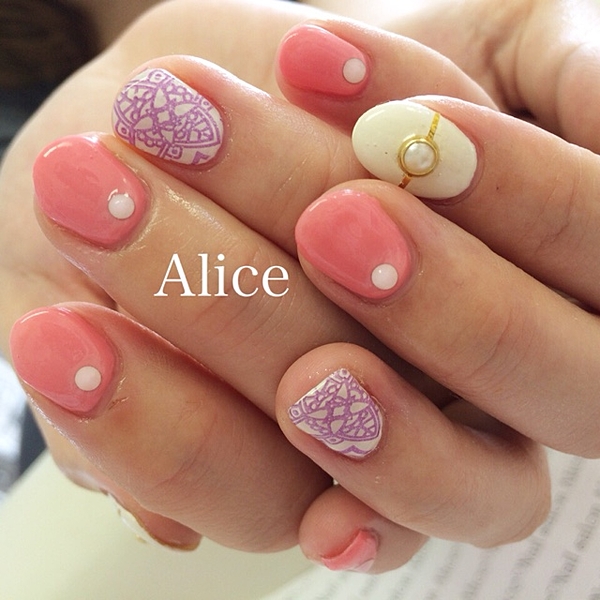 ピン系のネイルは、女性を可愛く見せてくれます♡