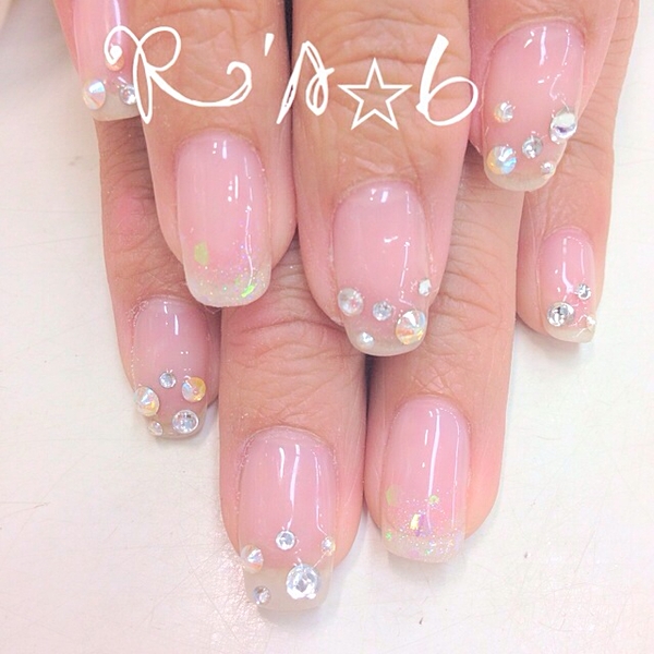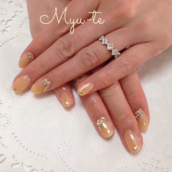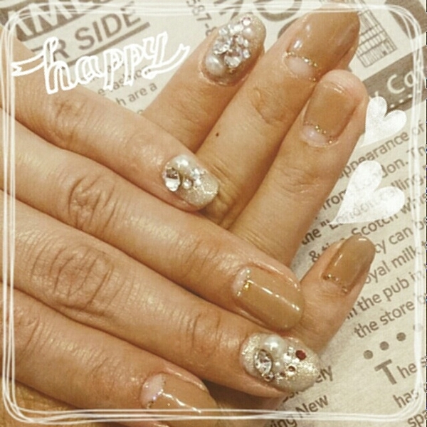 パールが入ったベージュネイルは爪をキレイに見せてくれますね!上品に入れられたストーンで、よりエレガントな雰囲気に!