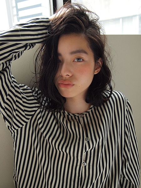 肩にかかる絶妙な長さが柔らかさを強調してくれる。