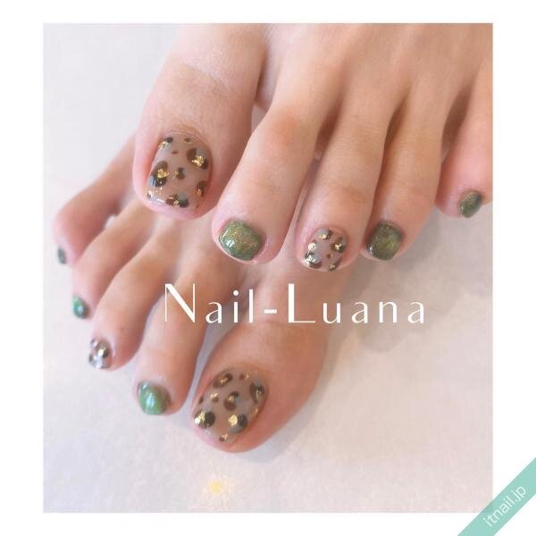 定番のレオパードはオシャレなカラーとかけ合わせるのもおすすめです。パールがかったグリーンとシックなレオパードで、秋らしさの中にオシャレ心をいっぱい詰め込んだデザイン。レオパードにもグリーンを忍ばせて統一感もあります。