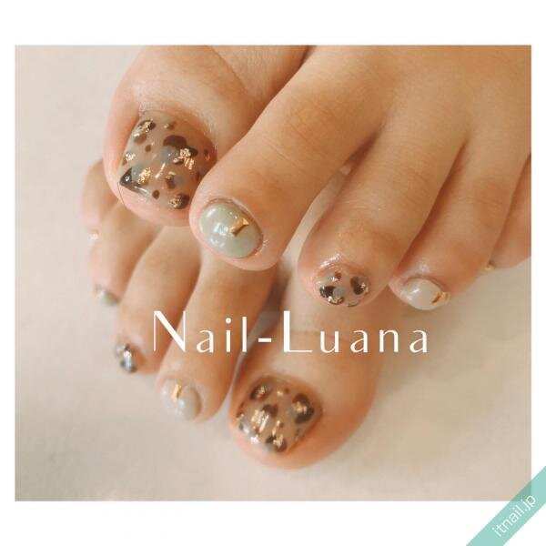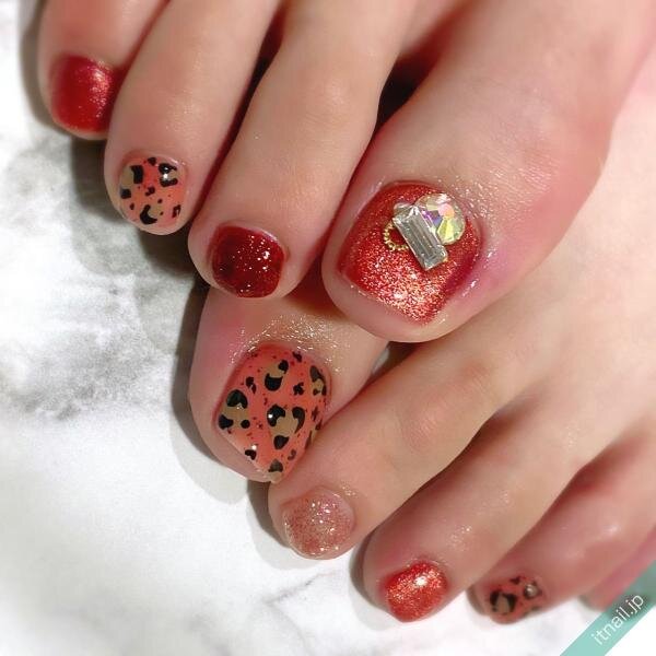 秋配色のレオパードフットネイル
