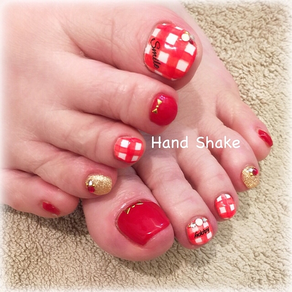 赤系のフットネイルには、