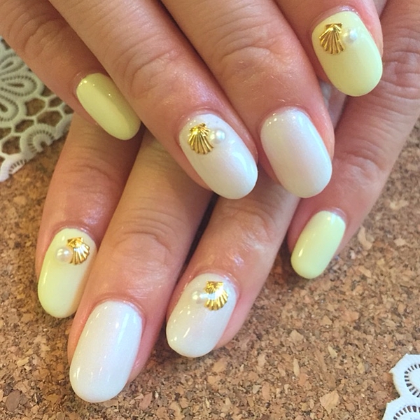 クリアベースにシェルをのせるだけで夏ネイル♪