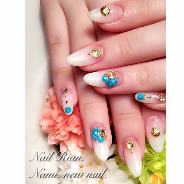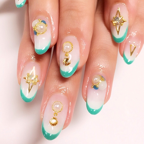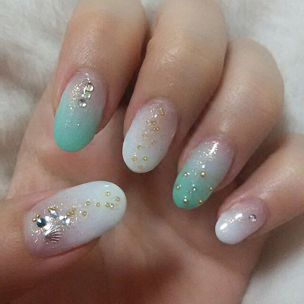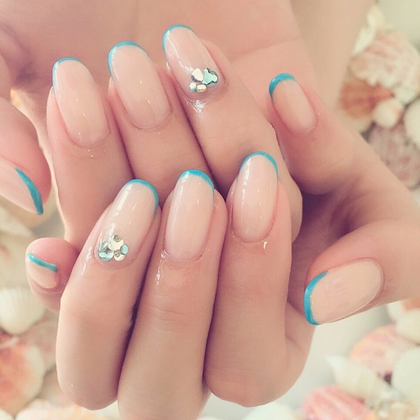 スタッズやストーンとのせるだけで、大人な夏ネイルになります