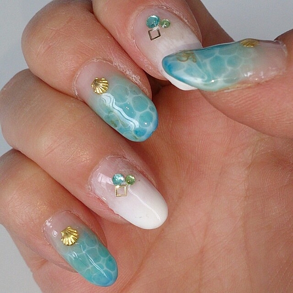 人とは違う魅力を出したい!大人っぽい夏デザインのジェルネイル♪