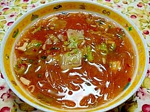 楽天レシピ:「ピリ辛☆春キャベツと春雨スープ 」より