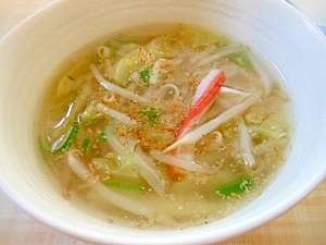 楽天レシピ:「キャベツともやしのコンソメとろみスープ 」より
