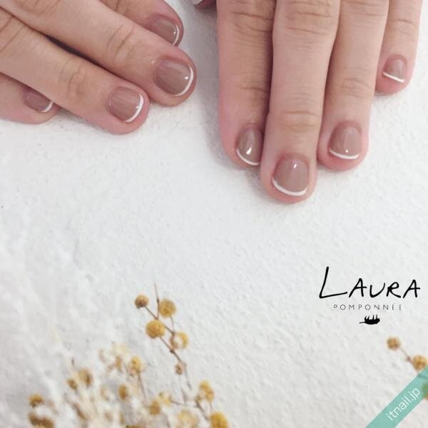 ショートネイルと、スキニーなフレンチネイルのかけ合わせがオシャレなデザイン。ブラウンにホワイトのラインというチョイスも、上品かつモードな雰囲気でオシャレ映え抜群です。