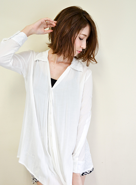 ちょっぴりマニッシュなボサッと無造作乾きヘア。