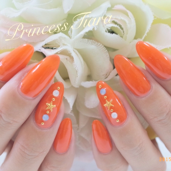 コーラルピンクは女性らしい印象に。