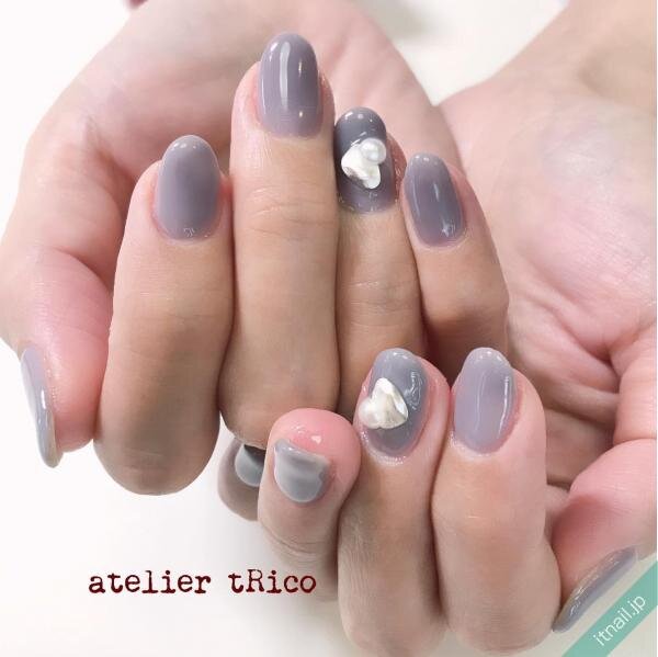 こちらは一般的に冬ネイルとして人気を集めることの多いグレーネイル。真冬にも大人気のグレーを季節の変わり目に取り入れたいなら、ちょっぴり色味を引き算。冬っぽさ満載のダークグレーよりもちょっぴり軽い印象を与えてくれる透明感を意識すれば、秋の終わりから冬始めまで季節の変わり目におすすめのカラーの完成です。