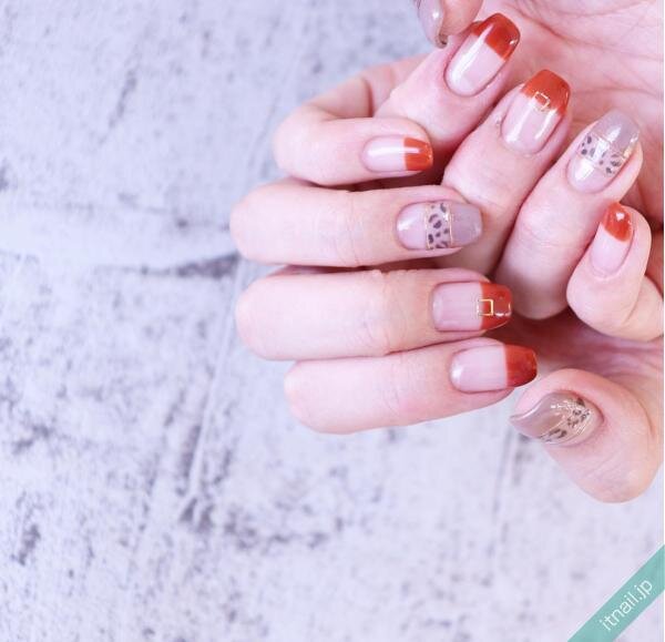 こちらは、一般的には冬ネイルとして人気を集めることの多いレオパードネイル。そんなレオパードネイルも透明感あるカラーでアートすることで、秋冬ネイルにブラッシュアップ。