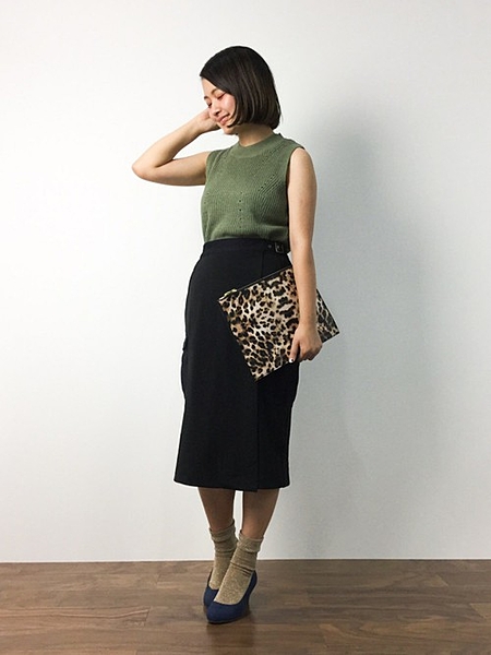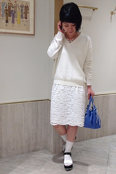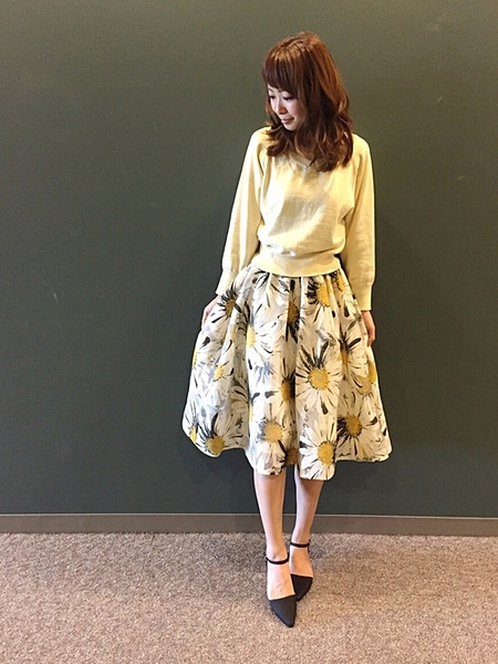 トップスはVネックで丈短なので スカートとの相性ばっちり。