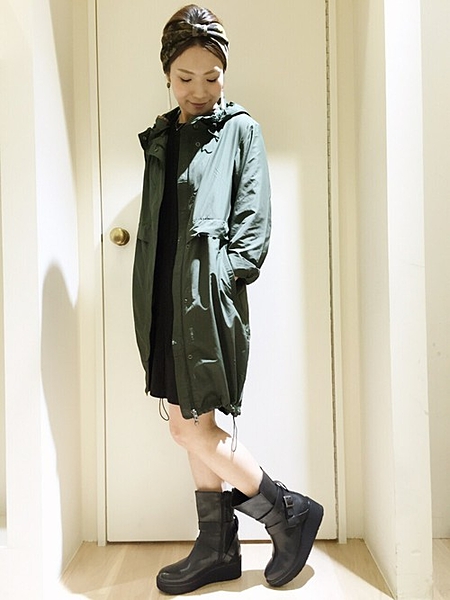 ボリューム感のあるタンクソールが足元のアクセントになるレースアップブーティ。メンズライクなルックスがマニッシュなコーデにぴったり。