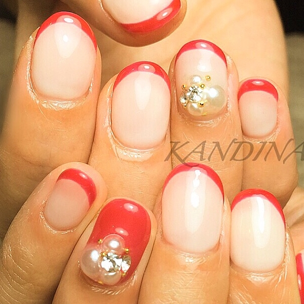 中指だけハート型のような変形フレンチを加えていてかわいらしい。♡
