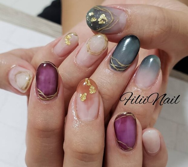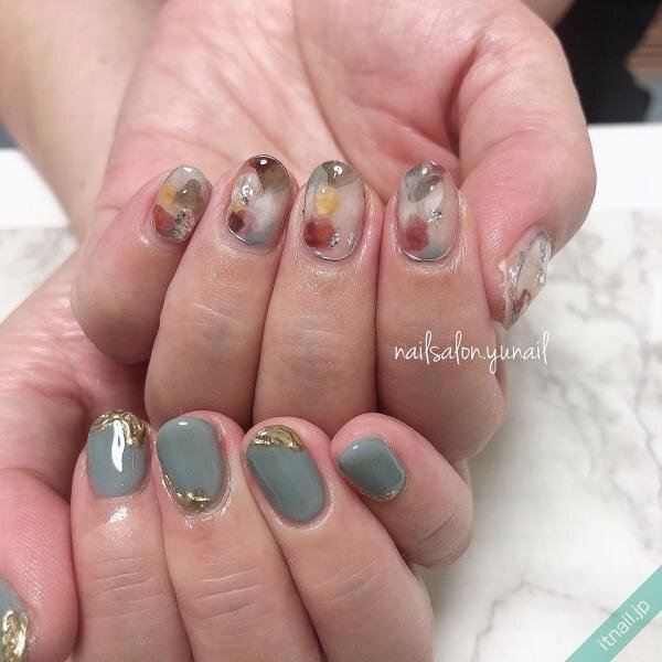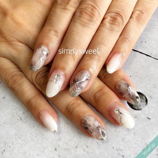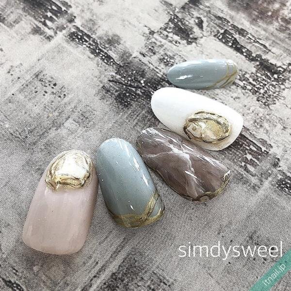 大理石のようなニュアンスアートが、とてもキレイでホイルやメタリックのラインがアンティーク感がありオシャレです。
