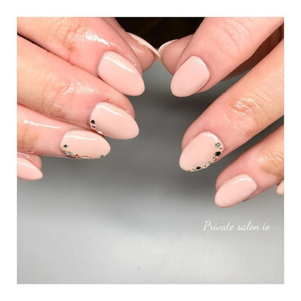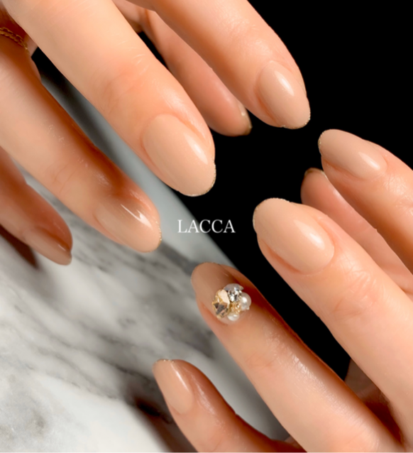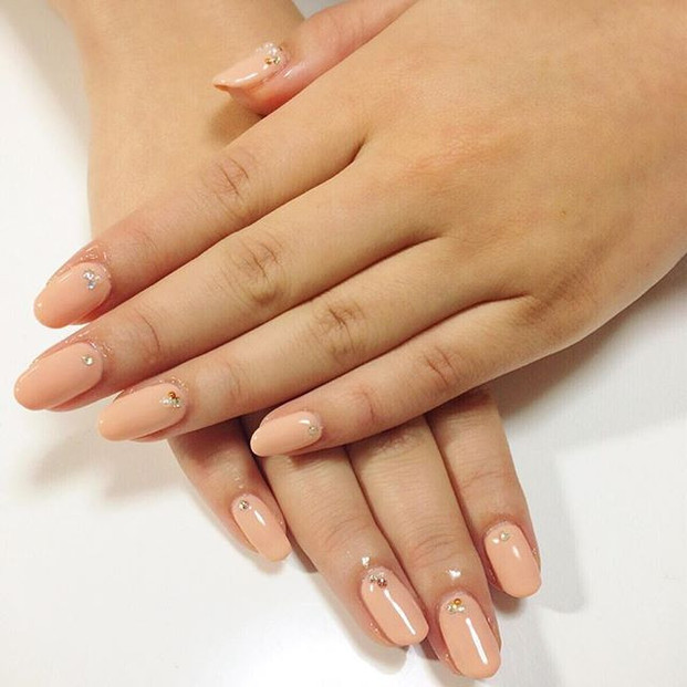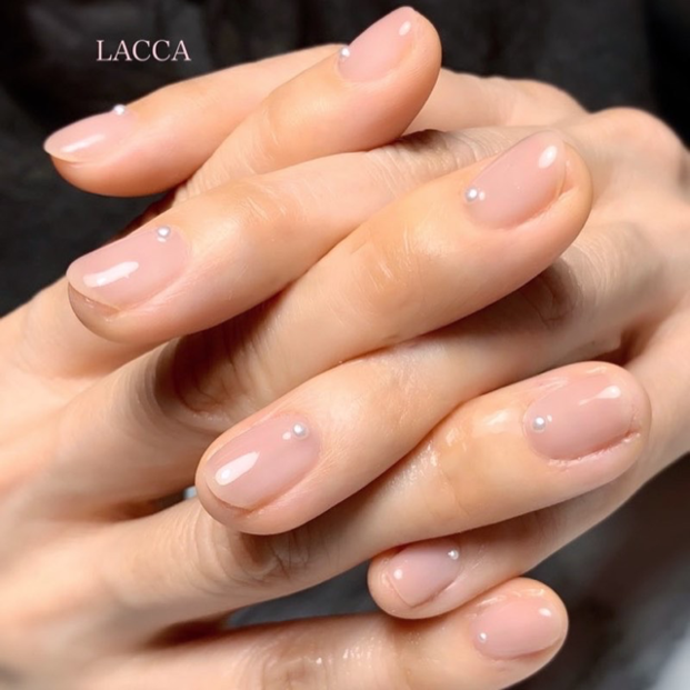 ツヤ感のある仕上がりにし、小さなパールをワンポイントでつければ、大人っぽくフェミニンな印象も与えることができますね。