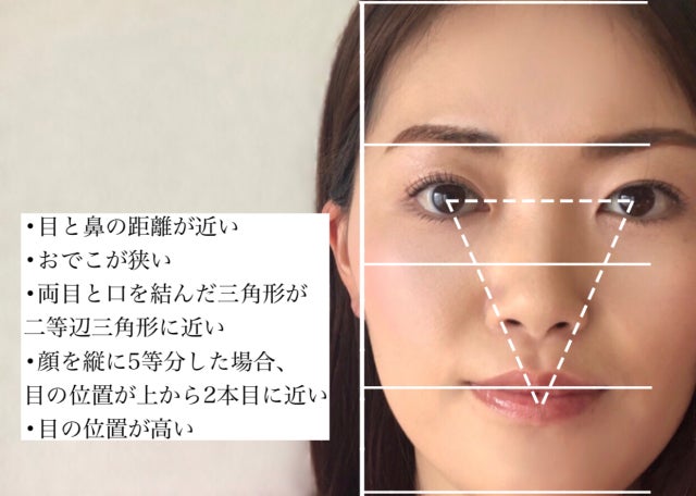 •額から顎まで顔を縦に5等分した時に目の位置が中心よりも上から2本目に近い