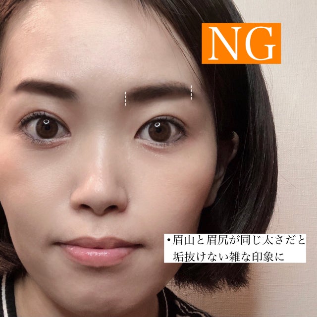 平行眉だからと眉頭から眉尻まで同じ太さの一文字眉もご法度です。なぜなら野暮ったい印象を持たれてしまうからです。