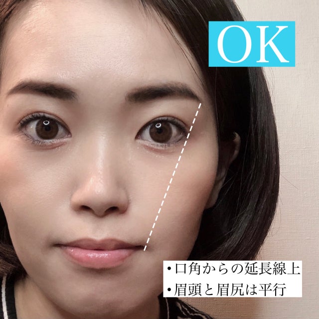 さらに眉尻の位置は、小鼻ではなく口角の延長線上に。眉を短めにすることで、老けて見えず若々しい印象を作ることができます。