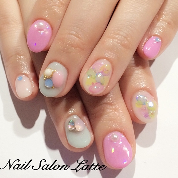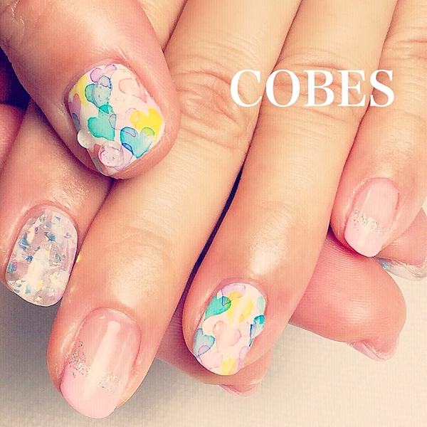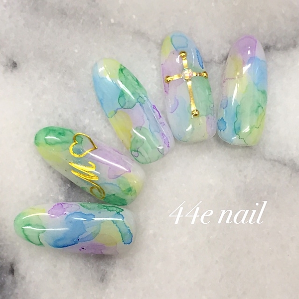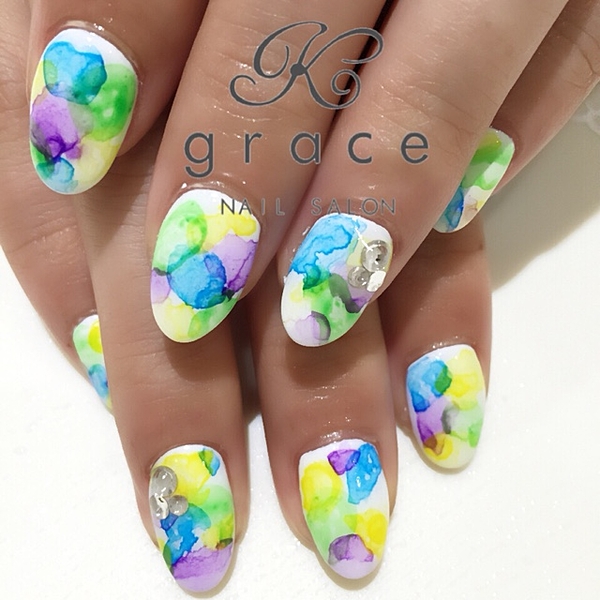 ぽたっと指先にカラフルな雨を♡梅雨こそ可愛い たらしこみネイル カタログ
