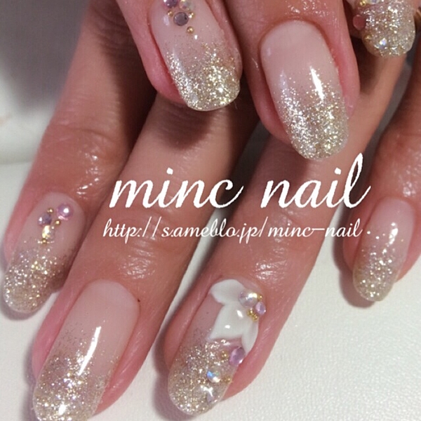 ピンクの綺麗カラーのラメグラデーション。バラの立体アートが素敵です。