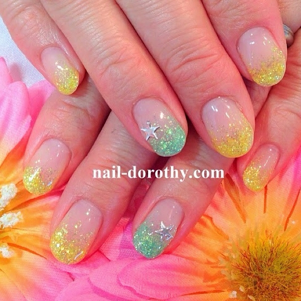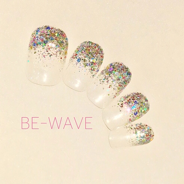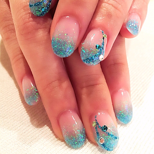 ブルーのラメグラデーションは海に似合う涼しげなデザインです。