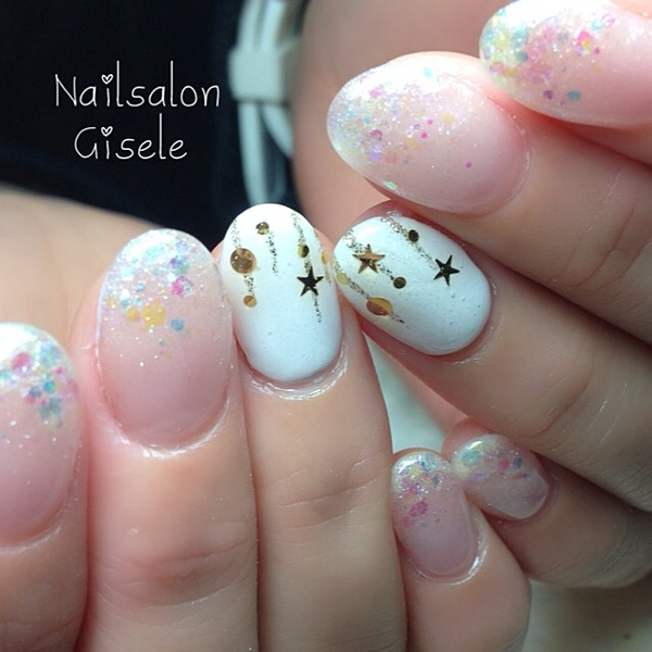 ラメグラデーションでも、ちょっと、ポイントでホログラムを入れるだけでまた、イメージが違います! 可愛い♡ http://t.co/1RHKoAeQPe