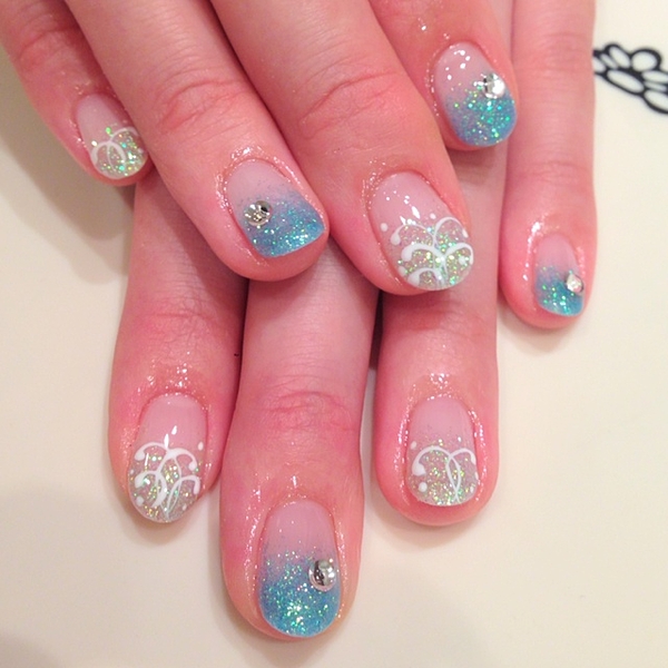 綺麗なブルーの涼しげなラメグラデーション。シンプルにかわいいラメグラデーションは多くの人に愛されてます。