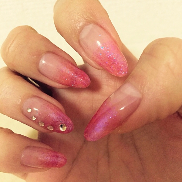 本日2人目は鈴木千鶴様にご来店頂きました❤️ ピンクのカラーとラメを使ったグラデーションのデザインになります☆ またのご来店お待ちしております http://t.co/FUEIzhjojB