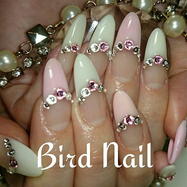 シンプルに根元に1つのせれば、上品な女の子らしい指先を演出してくれます♪