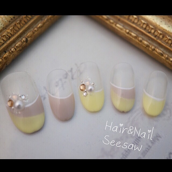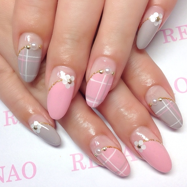 白フレンチや、クリアベースにギンガムチェックがかわいさアップです