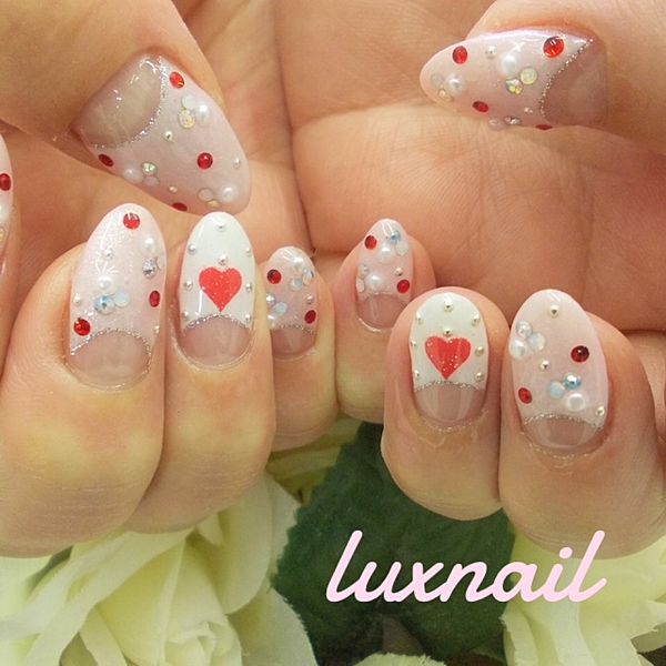 ハートのくりぬきフレンチにして、ストーンを沿わせて・・♪
