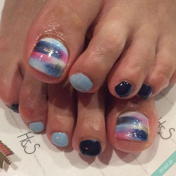寒色ブランケットネイルで爽やかフット
