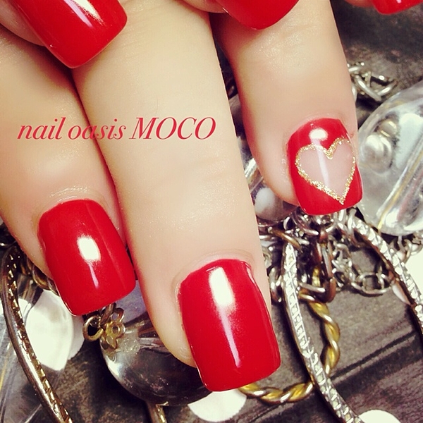 キュンとくるネイルNo.1♡真っ赤なハートネイル