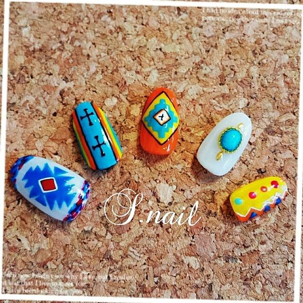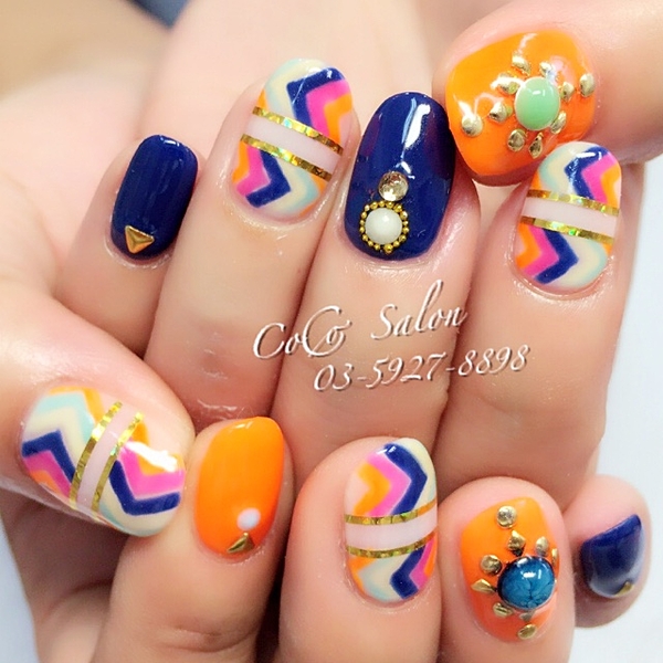 ボヘミアンネイルの注目カラーはオレンジ&ブルー♡オススメしたいデザインたち