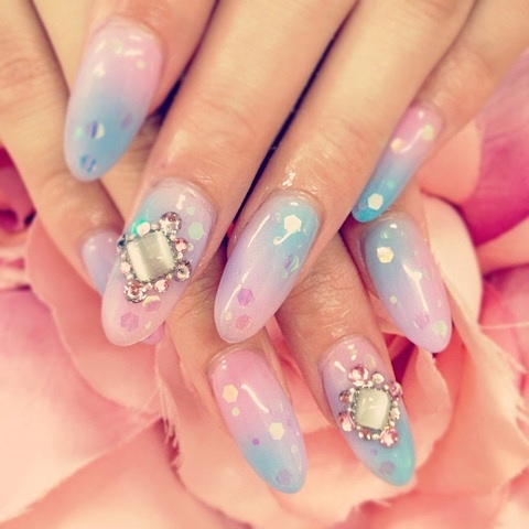 オーロラネイルとビジューの相性は本当にバッチリ!!!