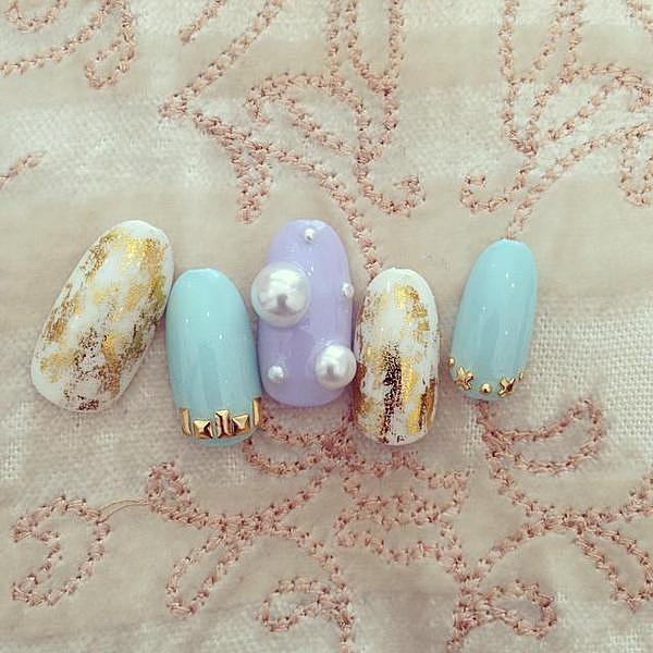 白っぽいベースとホイルネイルをあわせれば一気に大人な感じに。