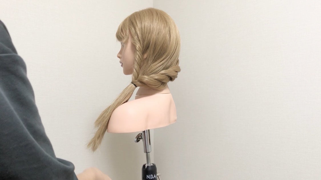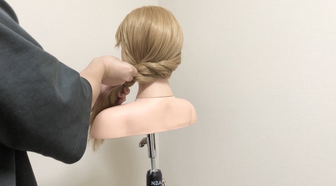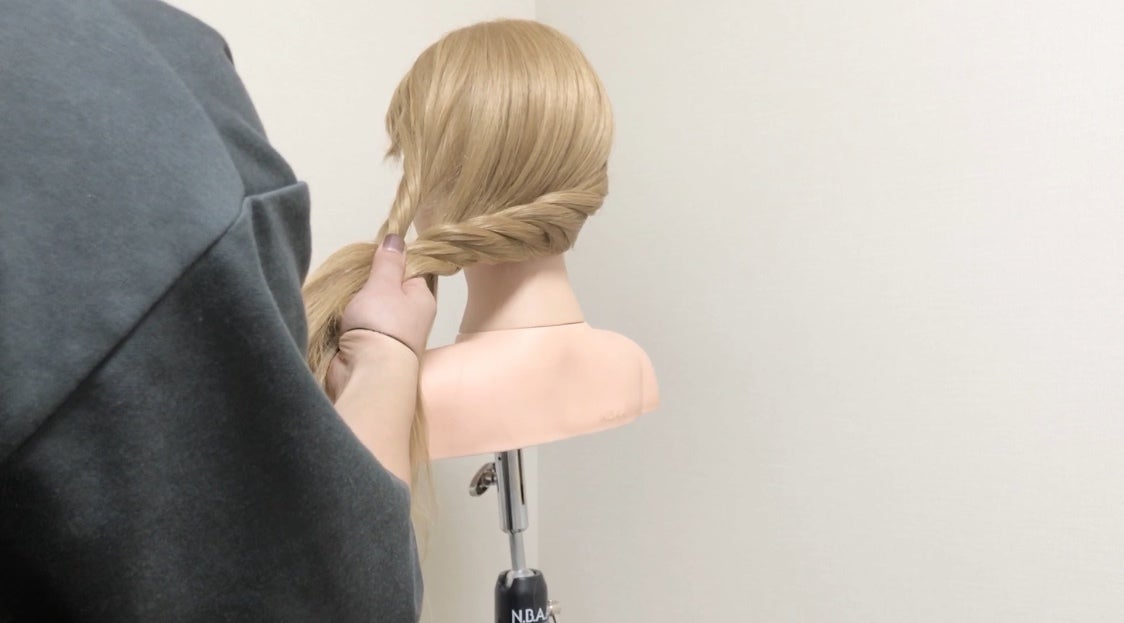 ⑤ 最後に残った毛先を巻いて全体を程よく崩したら完成です。