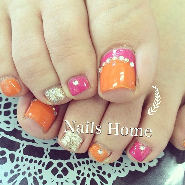 好きなだけつめこむ♪ストーンをつかったフットネイルデザイン