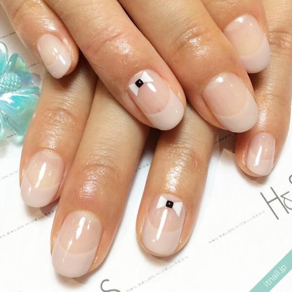 ヌーディーネイル×リボンで上品な印象に♡