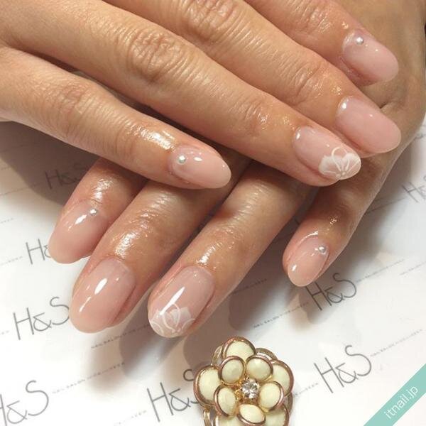 ヌーディーネイル×1本だけのフラワーアートで清楚な感じに♡