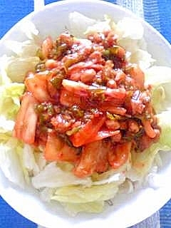 楽天レシピ:「納豆の食べ方-キムチ&メカブで☆ねばつるサラダ♪ 」より