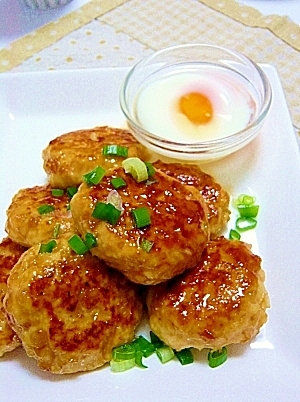 楽天レシピ:「水切りなし♡豆腐でボリューム♡ふわふわ鶏つくね 」より