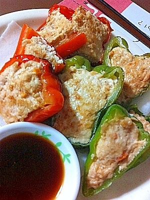 楽天レシピ:「パプリカの鶏肉詰め 」より