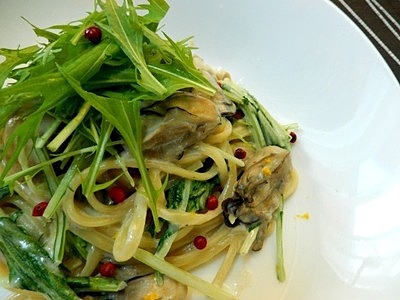 ■牡蠣と水菜の白味噌クリームパスタ 柚子風味
