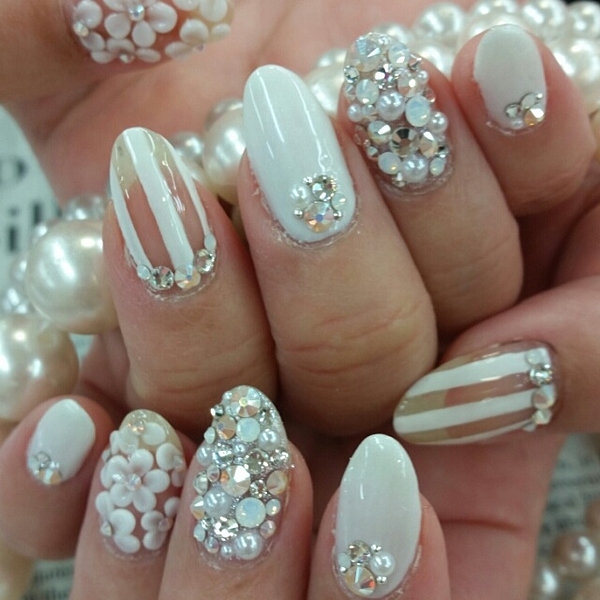 クリアベースにドットやハートをいっぱいのせて、上品にかわいく仕上げて・・♪