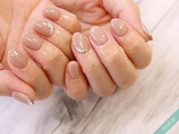 シンプルなベージュカラーも、少しブラウンが混ざった色味を選ぶとシックな雰囲気に。手元に上品になじんで清潔感たっぷりに仕上がります。オンにもオフにも、シチュエーションを選ばないナチュラルカラーは使いやすさ抜群。